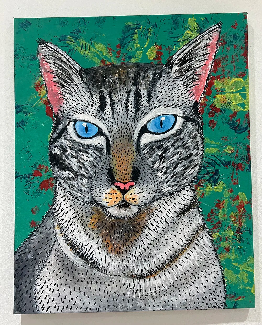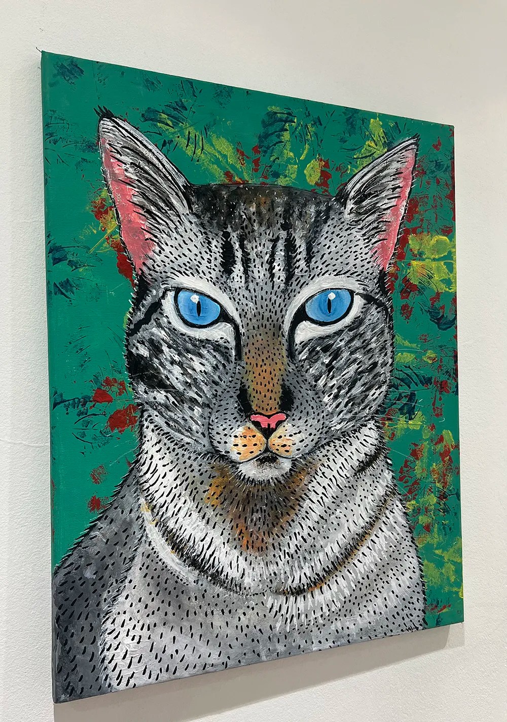 Artwork – Cat in Green Abstract (Original on Canvas & Prints)